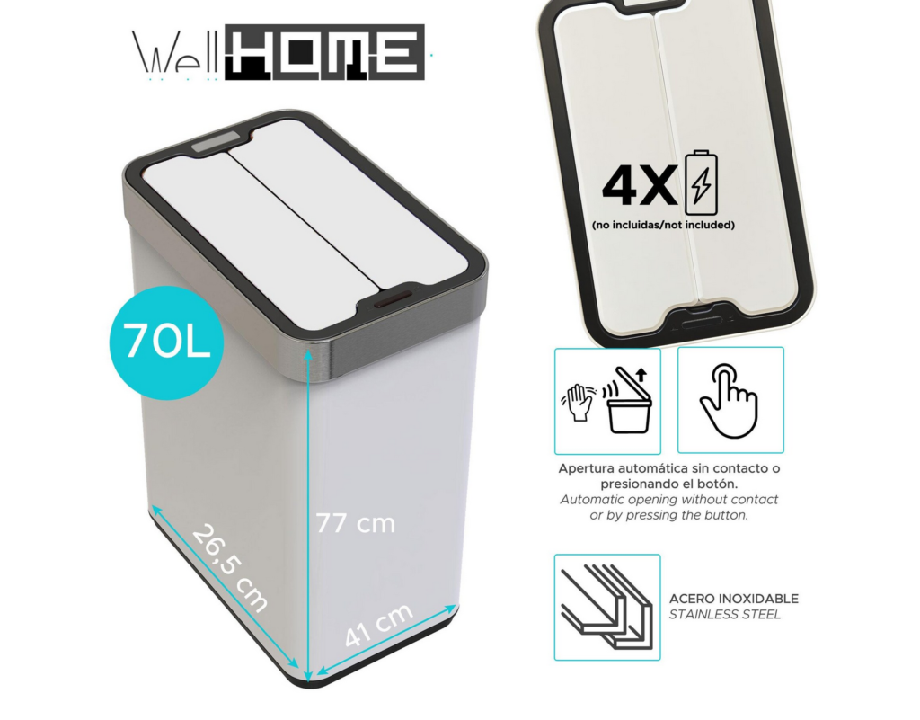 O Caixote do Lixo Wellhome 50L em Aço Inoxidável com Sensor Automático foi desenvolvido para oferecer máxima higiene, conforto e elegância no seu dia a dia.