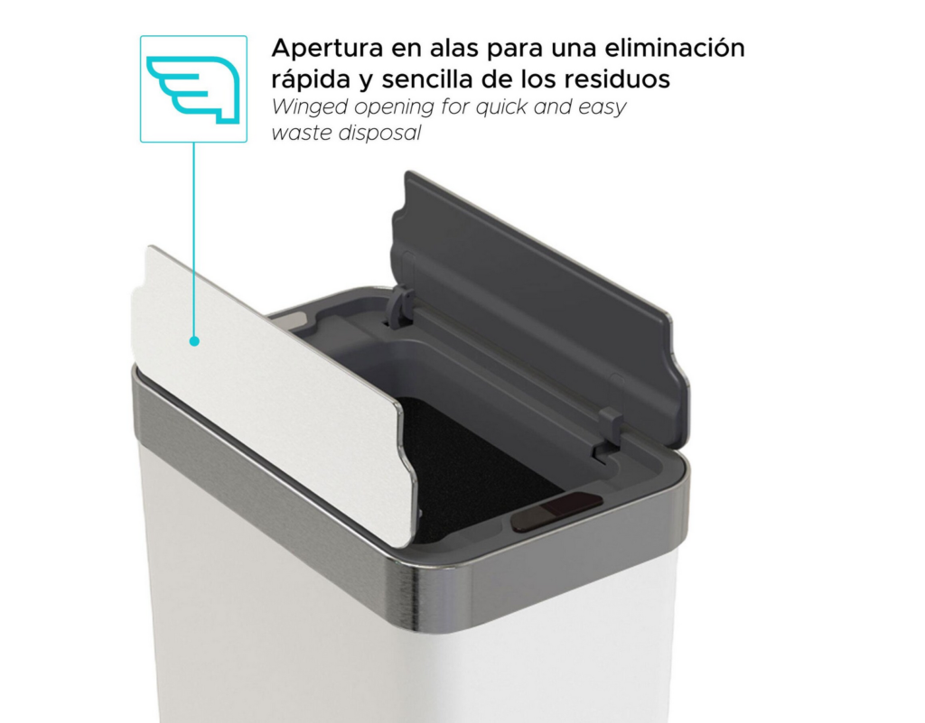 Graças ao seu sensor inteligente, permite a abertura da tampa sem contacto, evitando a propagação de bactérias e garantindo uma utilização mais higiénica. Para maior comodidade, dispõe também de opção de abertura manual por asa, facilitando o descarte rápido de resíduos.