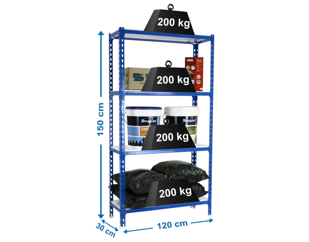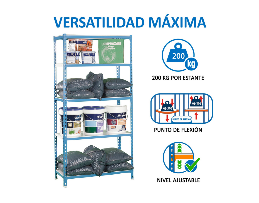 Construída com estrutura em aço reforçado e equipada com 4 prateleiras metálicas ajustáveis, esta estante suporta até 200 kg por nível, permitindo armazenar com total segurança ferramentas, equipamentos, caixas e materiais diversos.